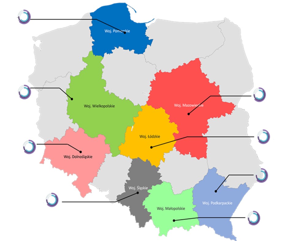Województwa z którymi współpracuje ITPE w zakresie badania popiołów (kod odpadu ex 20 01 99 oraz 10 01 01) i wykrywania nielegalnego spalania odpadów