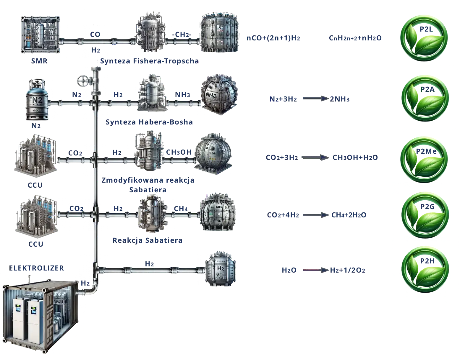 2. Rozwój technologii pozyskiwania surowców (wodoru i tlenków węgla) na potrzeby technologii P2X