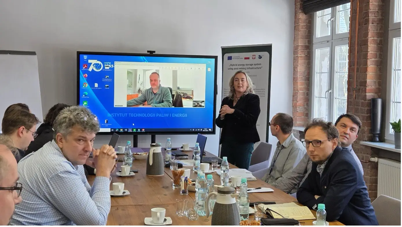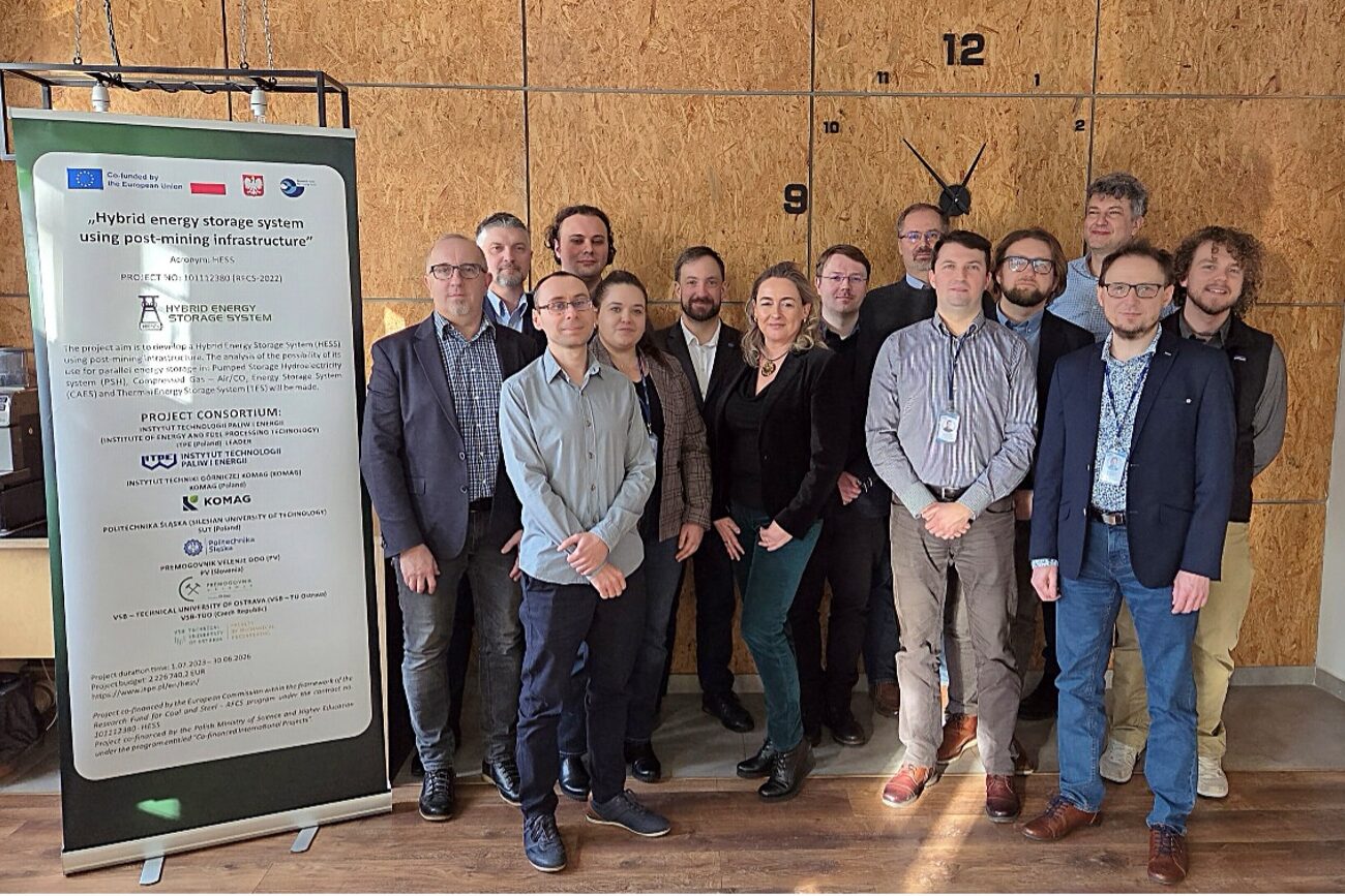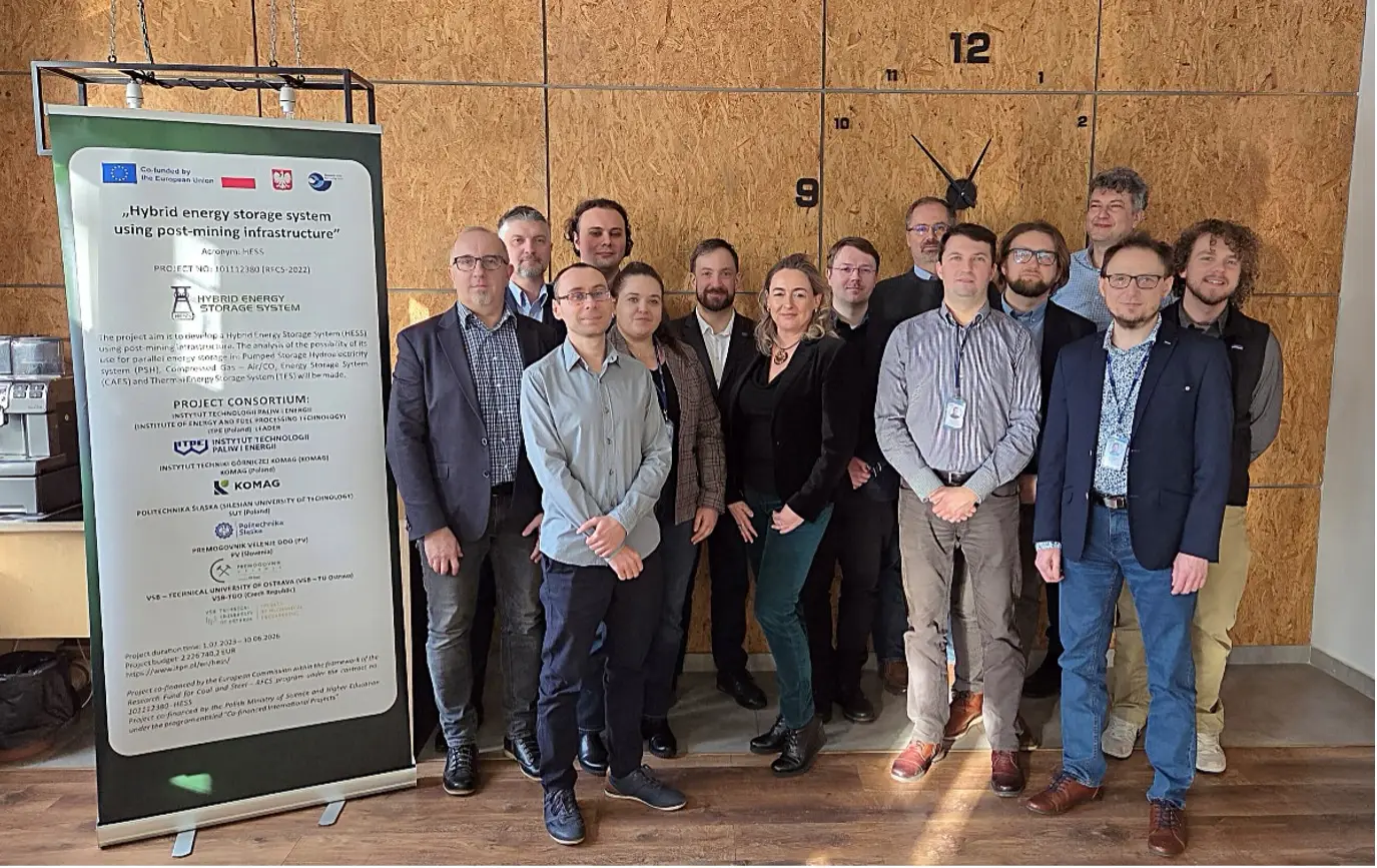 On January 12, 2026, a meeting of the project „Hybrid energy storage system using post-mining infrastructure” was held at the leader’s headquarters – Institute of Energy and Fuel Processing Technology (ITPE). The meeting was attended by representatives of five entities involved in the project, including: KOMAG Institute of Mining Technology (Poland), Silesian University of Technology (Poland), VSB – Technical University of Ostrava (Czech Republic) Premogovnik Velenje d.o.o. (Slovenia) and ITPE (Poland).