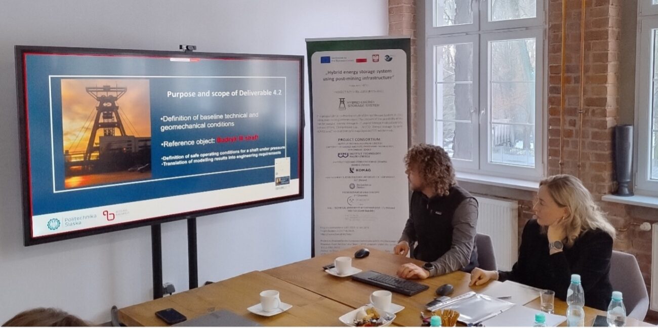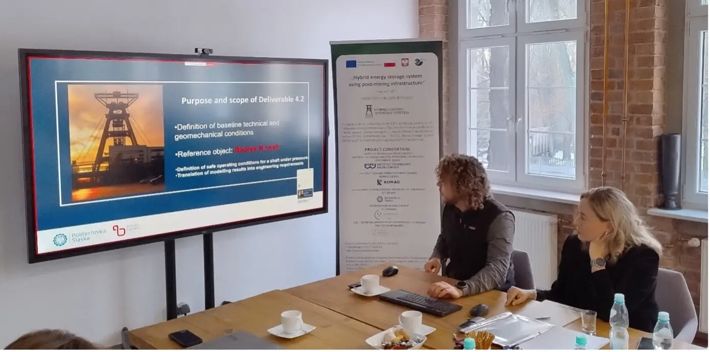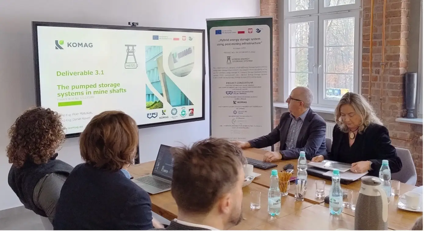 On January 12, 2026, a meeting of the project „Hybrid energy storage system using post-mining infrastructure” was held at the leader’s headquarters – Institute of Energy and Fuel Processing Technology (ITPE). The meeting was attended by representatives of five entities involved in the project, including: KOMAG Institute of Mining Technology (Poland), Silesian University of Technology (Poland), VSB – Technical University of Ostrava (Czech Republic) Premogovnik Velenje d.o.o. (Slovenia) and ITPE (Poland).