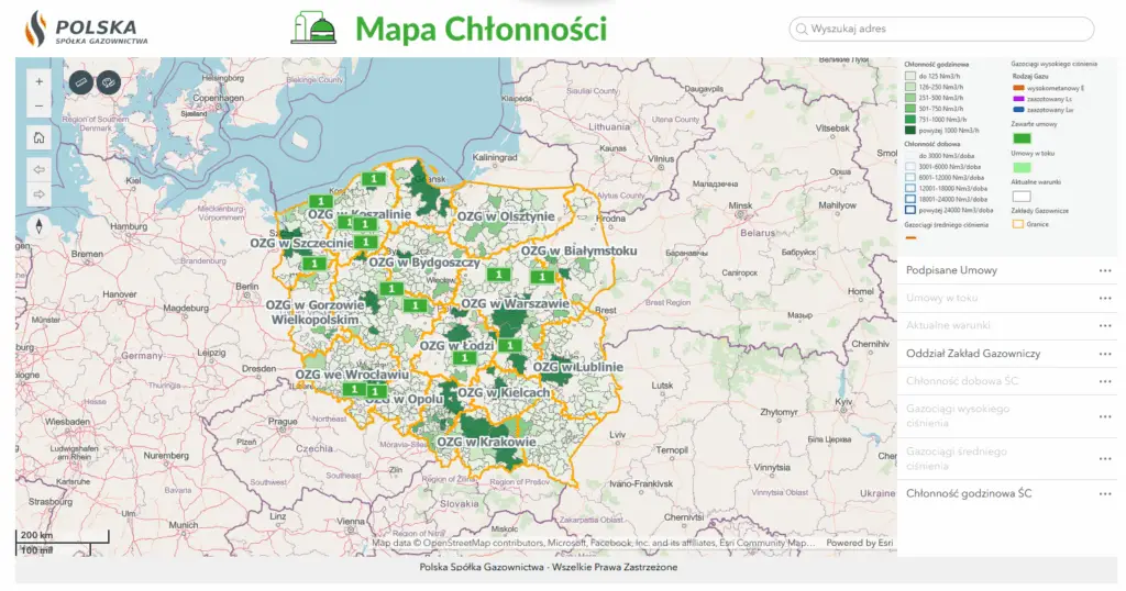Należy zaznaczyć, że Mapa Chłonności jest narzędziem wspomagającym – przedstawione wartości mają wyłącznie charakter poglądowy, a określenie rzeczywistej chłonności sieci powinno się opierać o warunki przyłączenia do sieci gazowej.