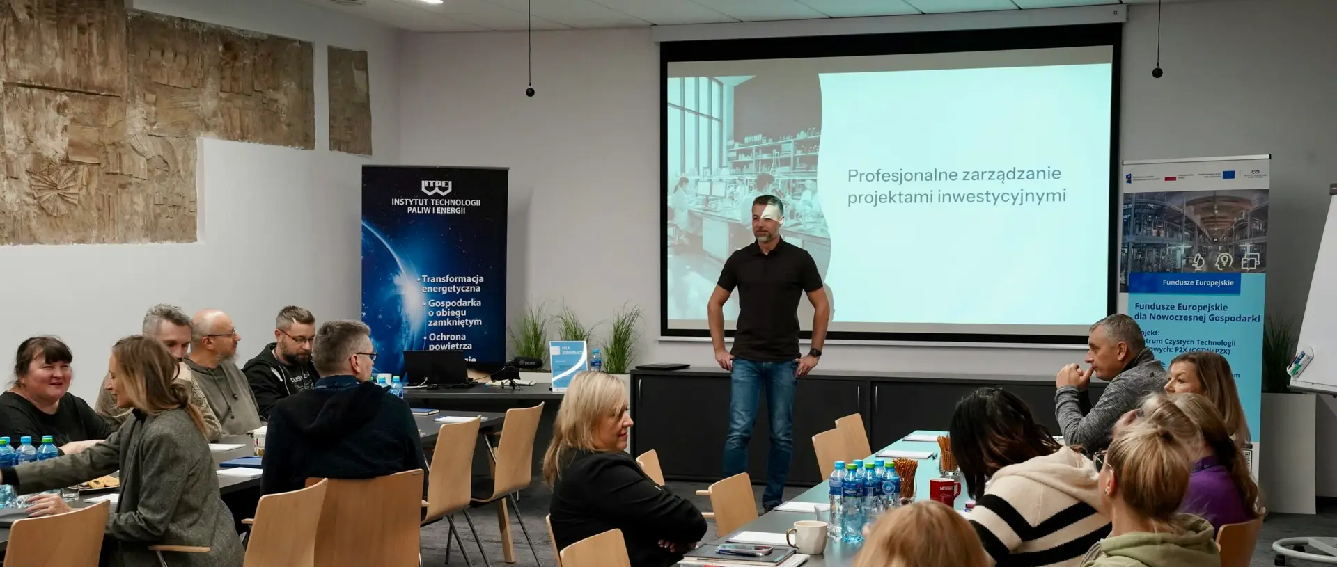 Uczestnicy szkolenia poznali nowoczesne metody planowania i realizacji projektów, ćwiczyli praktyczne narzędzia wspierające pracę zespołów, wymieniali się doświadczeniami i dobrymi praktykami. Omówiono kluczowe obszary związane z realizacją projektów inwestycyjnych, w tym budowę harmonogramów, zarządzanie zasobami i budżetem, identyfikację ryzyk oraz praktyczne narzędzia wspierające nadzór nad złożonymi przedsięwzięciami technologicznymi. Zdobytą wiedzę uczestnicy wykorzystają w bieżącej realizacji projektu P2X oraz w przyszłych działaniach Instytutu. Szkolenie zostało przeprowadzone w ramach działań rozwojowych przewidzianych w projekcie i stanowi ważny krok w budowaniu kompetencji zespołu zaangażowanego w tworzenie nowej infrastruktury badawczej.