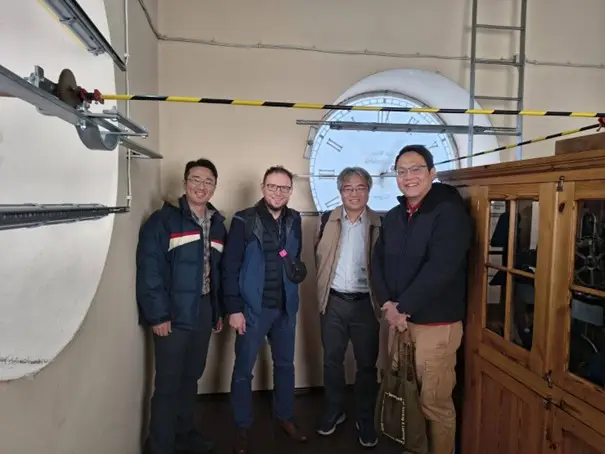 Podczas wizyty strony tajwańskiej w ITPE. Od lewej stoją: prof. Chao-Wei Huang (z-ca kierownika, co-PI), Janusz Lasek (kierownik projektu cz. polskiej, PI), prof. Wen-Lih Chen (z-ca kierownika, co-PI), prof. Yueh-Heng Li (kierownik projektu cz. tajwańskiej, PI).