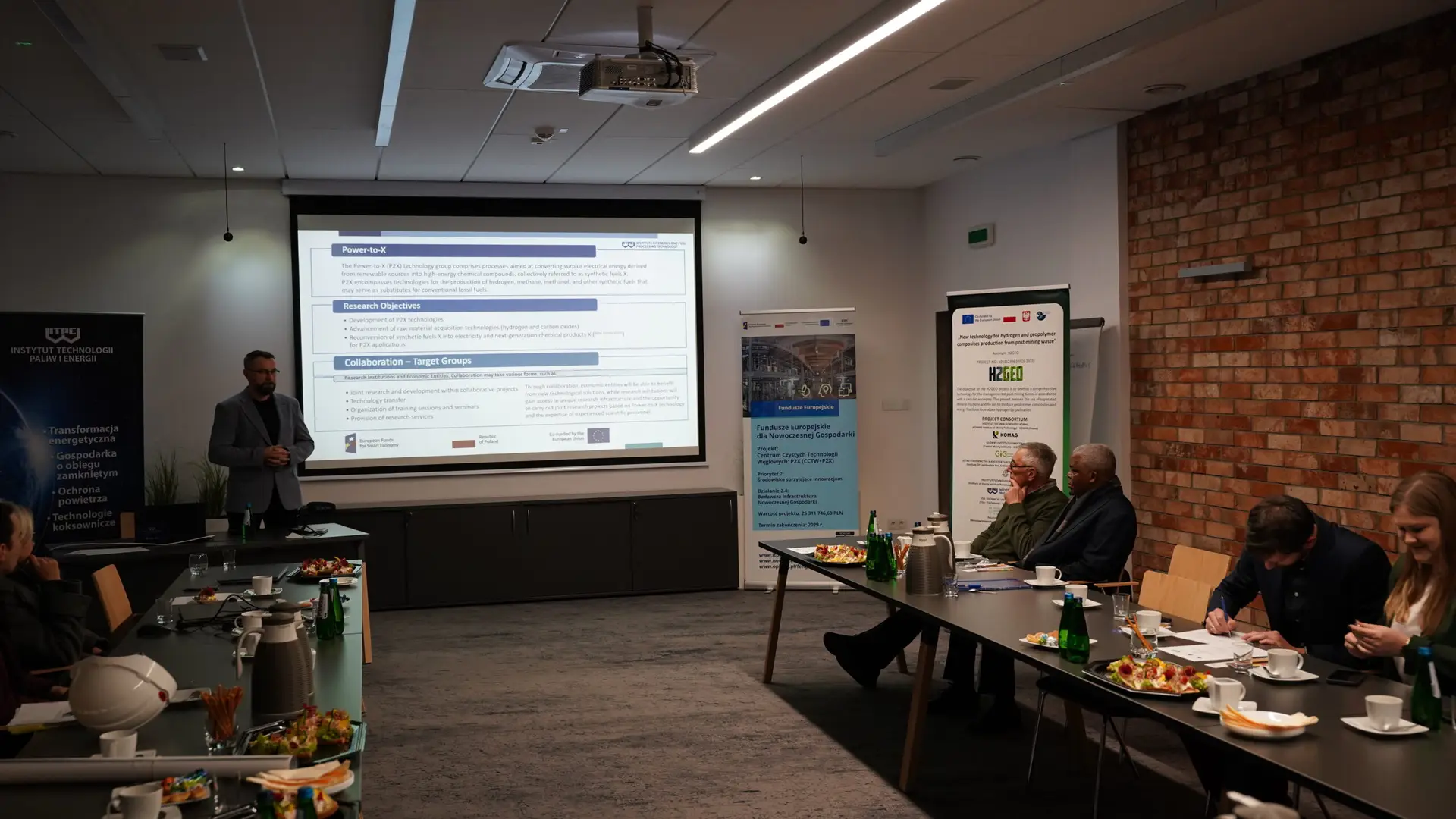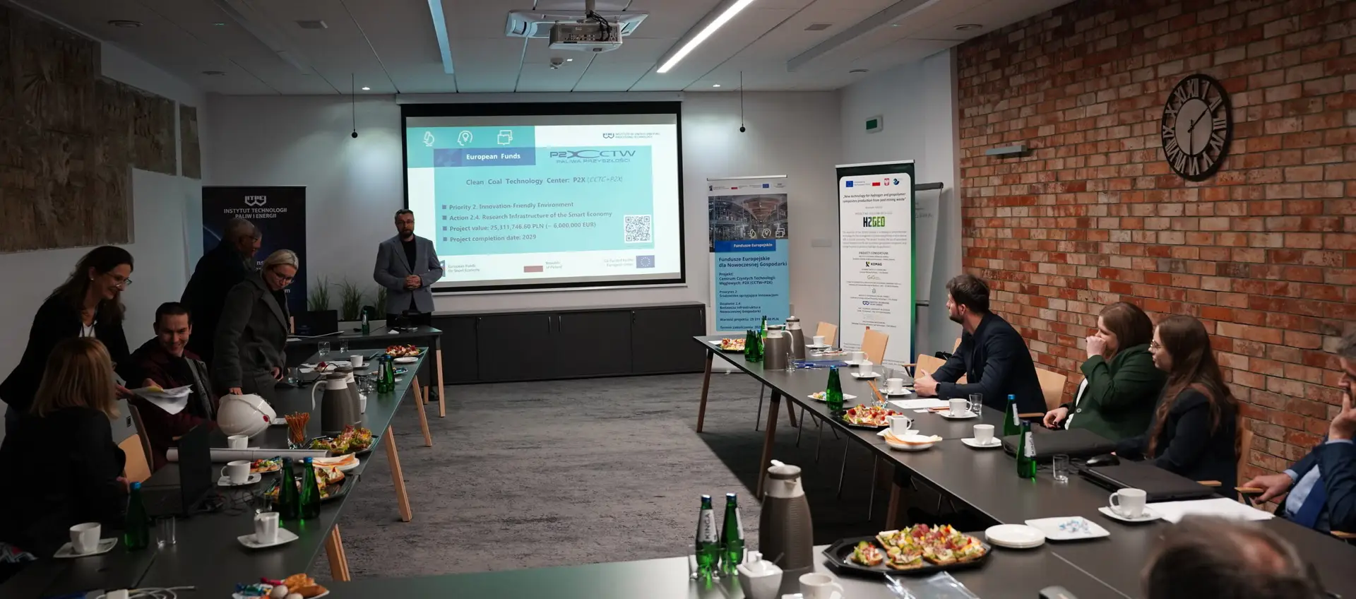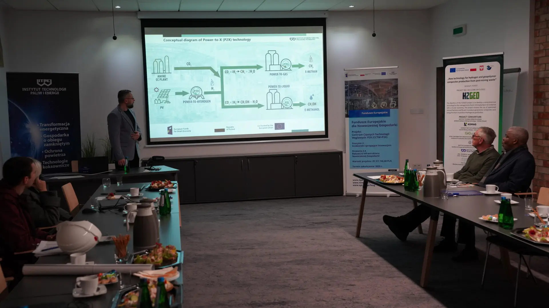 Na spotkaniu partnerów projektu „New technology for hydrogen and geopolymer composites production from post-mining waste” (H2GEO), projektu który koncentruje się na opracowaniu innowacyjnej technologii przetwarzania odpadów pogórniczych na wodór oraz geopolimerowe materiały kompozytowe został zaprezentowany najnowszy projekt inwestycyjny Instytutu – Centrum Czystych Technologii Węglowych: P2X (CCTW+P2X).