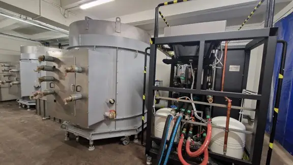 - izolowanych magazynów ciepła PCM wyposażonych w wymienniki ciepła i pompy, które zostały dostarczone przez konsorcjanta projektu Instytut Techniki Górniczej KOMAG,