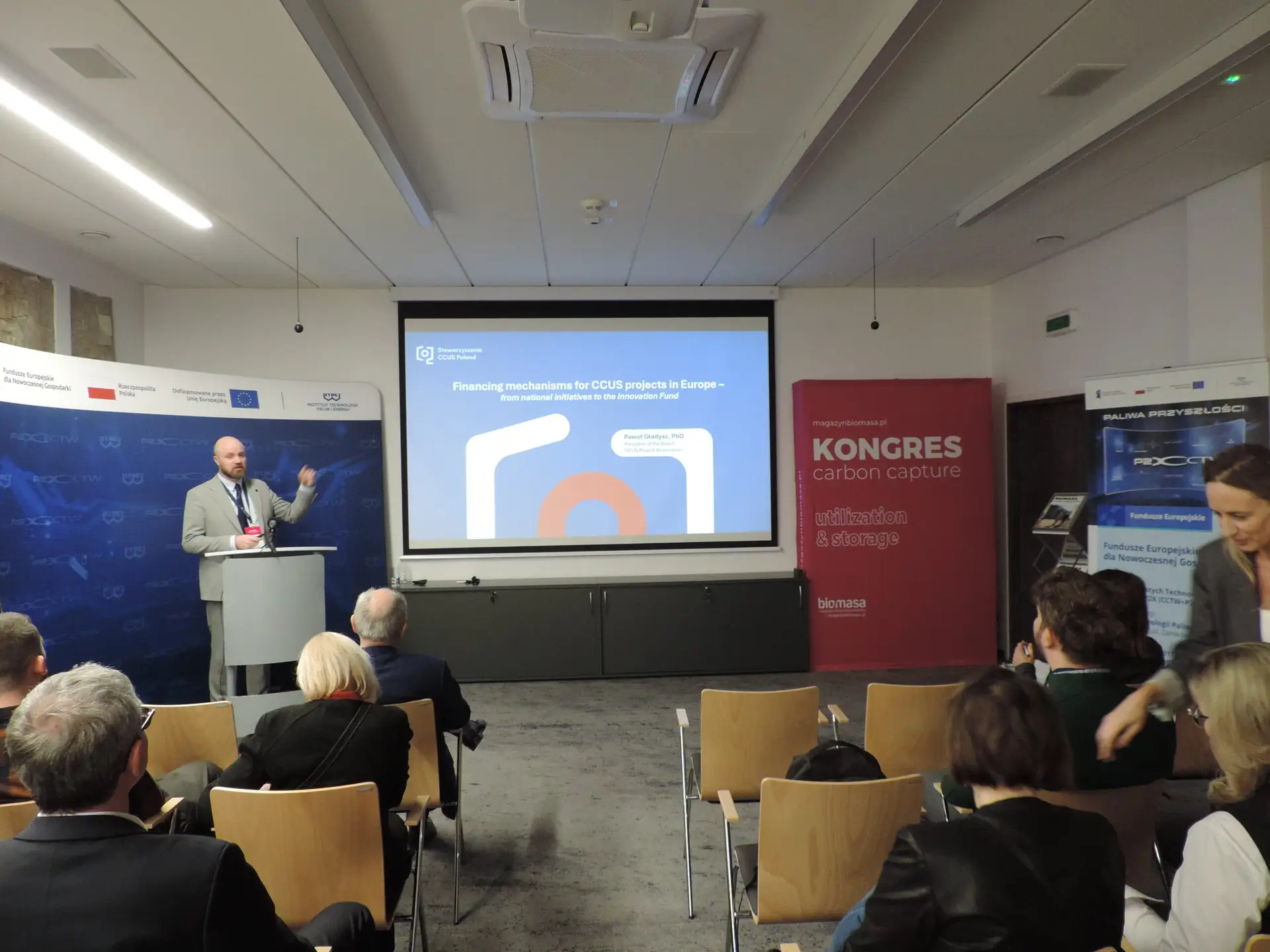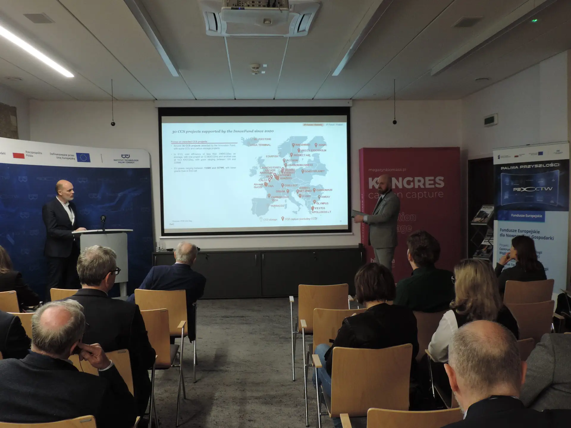 Druga część wydarzenia dobiegła końca, skupiła się ona na praktycznych aspektach finansowania projektów związanych z wychwytywaniem, transportem i składowaniem CO₂ (CCUS). Uczestnicy otrzymali zarówno przegląd europejskich instrumentów wsparcia, jak i omówienie możliwości dostępnych w Polsce.